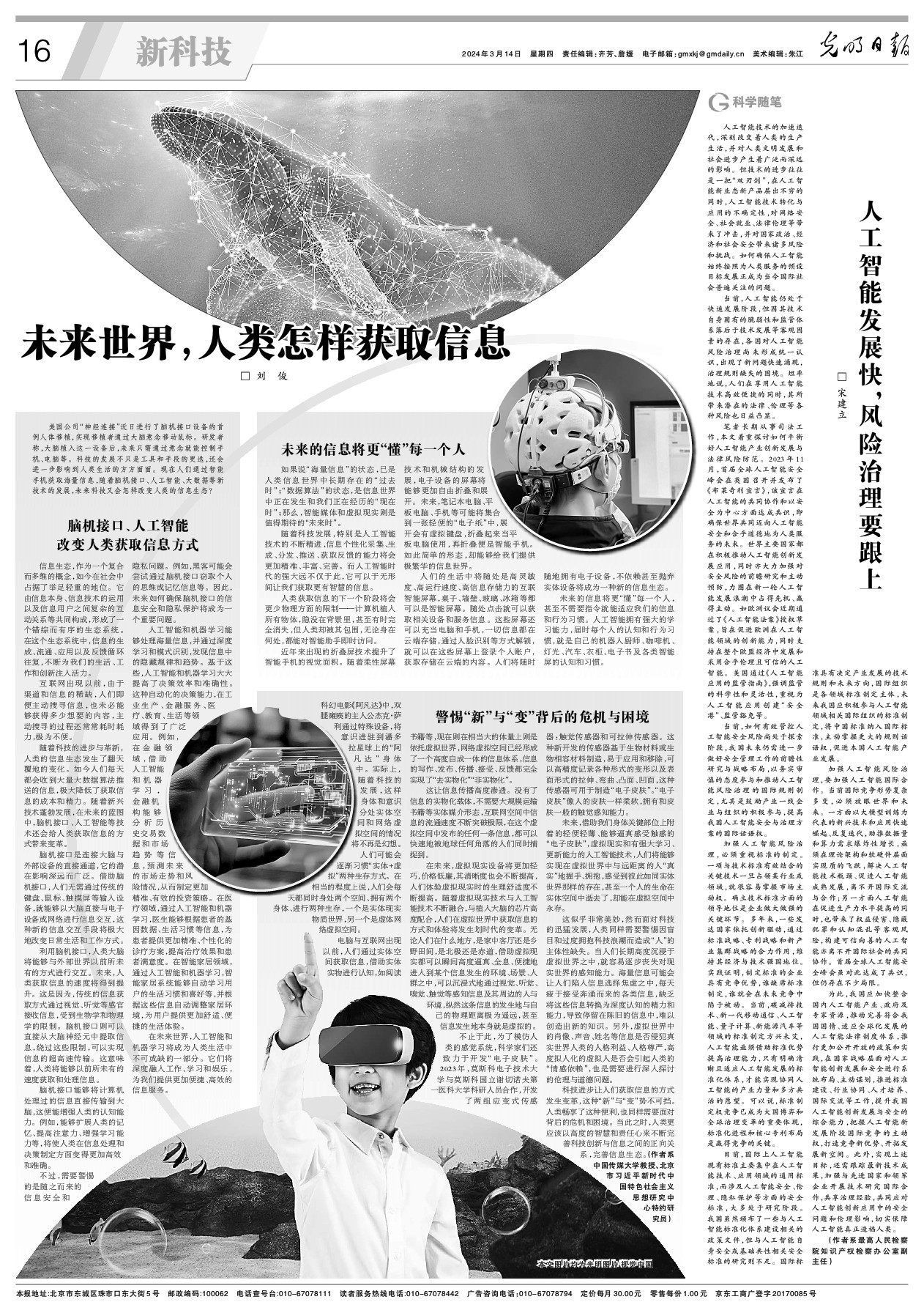 随着科技的进步与革新,人类的信息生态发生了翻天覆地的变化。如今人们每天都会收到大量大数据算法推送的信息,极大降低了获取信息的成本和精力。随着新兴技术蓬勃发展,在未来的蓝图中,脑机接口、人工智能等技术还会给人类获取信息的方式带来变革。